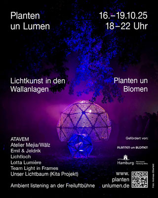 Planten un Lumen ist ein kleines Festival das Lichtkunst als zeitgenössische Kunstform im öffentlichen Raum zeigt. Es findet in den den großen Wallanlagen (Planten un Blomen, Hamburg) zwischen den U-Bahn Stationen St. Pauli und Messehallen statt.
